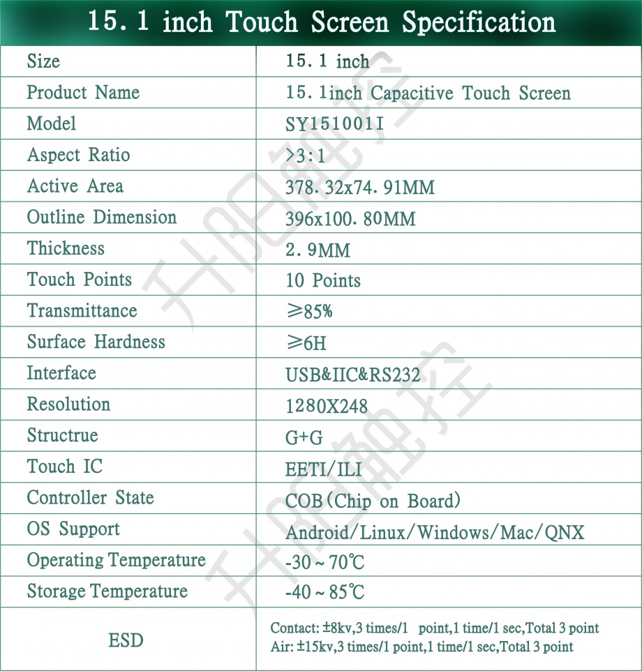 | 关键描述: | 15.1寸切割条形电容屏 G+G 多点触摸 USB/I2C 数字标牌触摸屏 商超零售货架条形触摸屏 公交站台条形屏 匹配G151EVN01.0 |