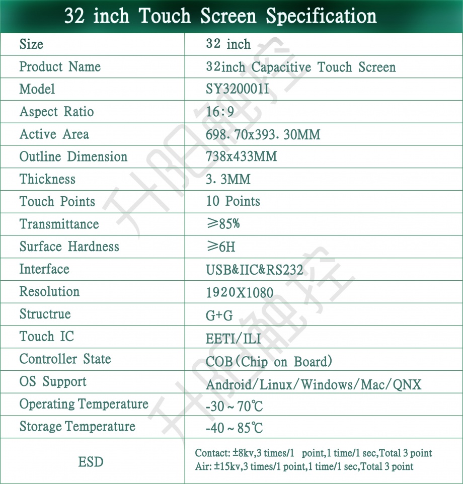 | 关键描述: | 32寸电容触摸屏 G+G 多点触摸 USB 防水电容屏 商显一体机触摸屏 医疗显示触摸屏 工业触摸屏 |