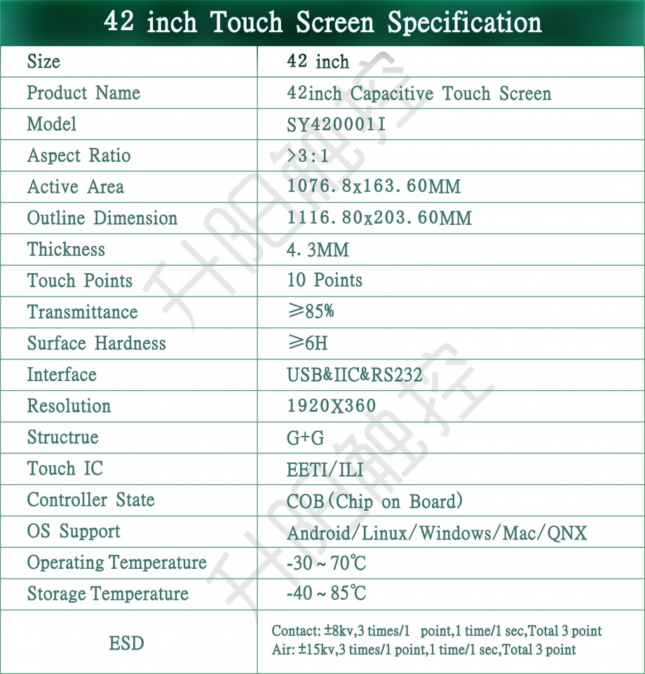 | 关键描述: | 42寸条形电容屏 G+G 多点触摸 USB/I2C 数字标牌触摸屏 商超零售货架条形触摸屏 公交站台条形屏 |