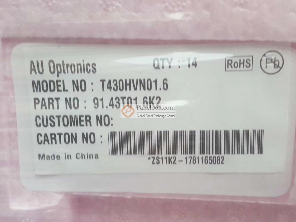 电视等产品。本产品已邦定6 source chips驱动IC。根据屏库掌握的情报此产品于2015年Q2量产,当前生产状态为已停产。目前此型号在屏库上有0条现货信息、0家供应商信息,交易氛围清淡。屏库于2015年10月06日对此型号首次建立参数,并于2024年01月29日对参数进行了最后更新。根据友达 (AUO)于2015年4月29日发布的版本号为Ver1.0的产品规格书,T430HVN01.6 CELL显示分辨率为