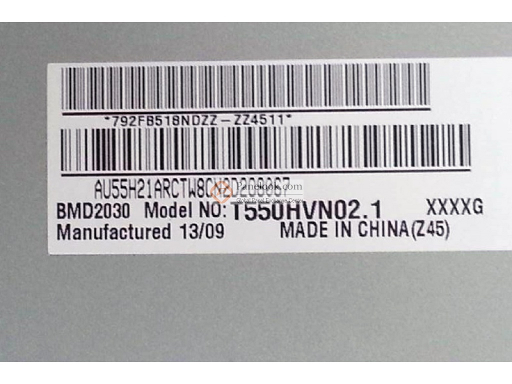 T550HVN02.1是友达光电股份有限公司 (友达,AUO) 推出的一款采用a-Si TFT-LCD技术的55英寸液晶模组产品,它装配有CCFL背光,含逆变器背光驱动,无触摸。根据友达 (AUO)于2012年3月22日发布的版本号为Ver0.0的产品规格书,T550HVN02.1显示分辨率为1920(RGB)×1080 (FHD),宽高比为16:9 (宽:高),像素采用RGB垂直条状排列。它的显示区域尺寸为1209.6×680.4 (宽×高) mm,可视尺寸为1217.6×688.4 (宽×高) mm,外观尺寸为1286×745 (宽×高)×61(厚) mm,表面处理为雾面,Hard coating (3H),产品净重20.5Kgs。背光方面此产品采用了18 pcs CCFL发光的直下式光源,含逆变器。T550HVN02.1采用了LVDS (4 ch, 10-bit)信号接口,总共92 pins,采用端子连接,驱屏电压为12.0V (Typ.)。它的典型垂直刷新率Fv为120Hz。如果开发新产品想采用T550HVN02.1液晶模组,屏库®建议您向友达 (AUO)或其代理商了解关于T550HVN02.1的最新的生产状态信息和技术信息。屏库®上所显示的面板参数均由屏库电子工程师依据规格书录入,已尽力减少错误,但不能保证参数的完全正确。请以规格书为准!根据屏库掌握的情报此产品于2012年Q2量产,当前生产状态为已停产。目前T550HVN02.1在屏库上有0条现货信息、0家供应商信息,交易氛围清淡。屏库于2013年04月08日对此型号首次建立参数,并于2025年12月01日对参数进行了最后更新。它的工作温度为 0 ~ 50°C,存储温度为 -20 ~ 60°C,耐振动性为1.5G (14.7 m/s²)。基于它120Hz,含逆变器,180度翻转显示,10位灰阶,表面雾面等特征,此型号推荐使用于电视。