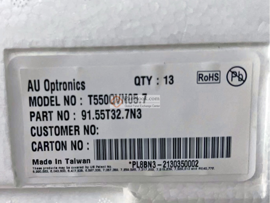 电视等产品。本产品已邦定12 source chips驱动IC。根据屏库掌握的情报此产品于2017年Q4量产,当前生产状态为量产中。目前此型号在屏库上有4条现货信息、5家供应商信息,交易氛围活跃。屏库于2018年03月16日对此型号首次建立参数,并于2024年03月15日对参数进行了最后更新。根据友达 (AUO)于2021年5月6日发布的版本号为Ver2.1的产品规格书,T550QVN05.7 CELL显示分辨率为