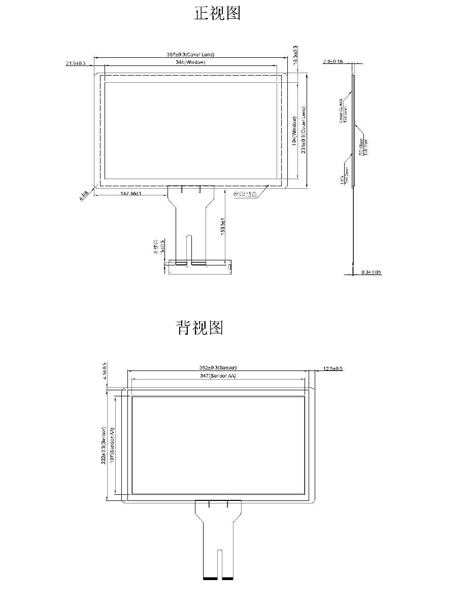 15.6寸投射式电容屏, 10点触摸, G+G 工控、军工, 医疗电容屏, POS机、自助设备电容屏