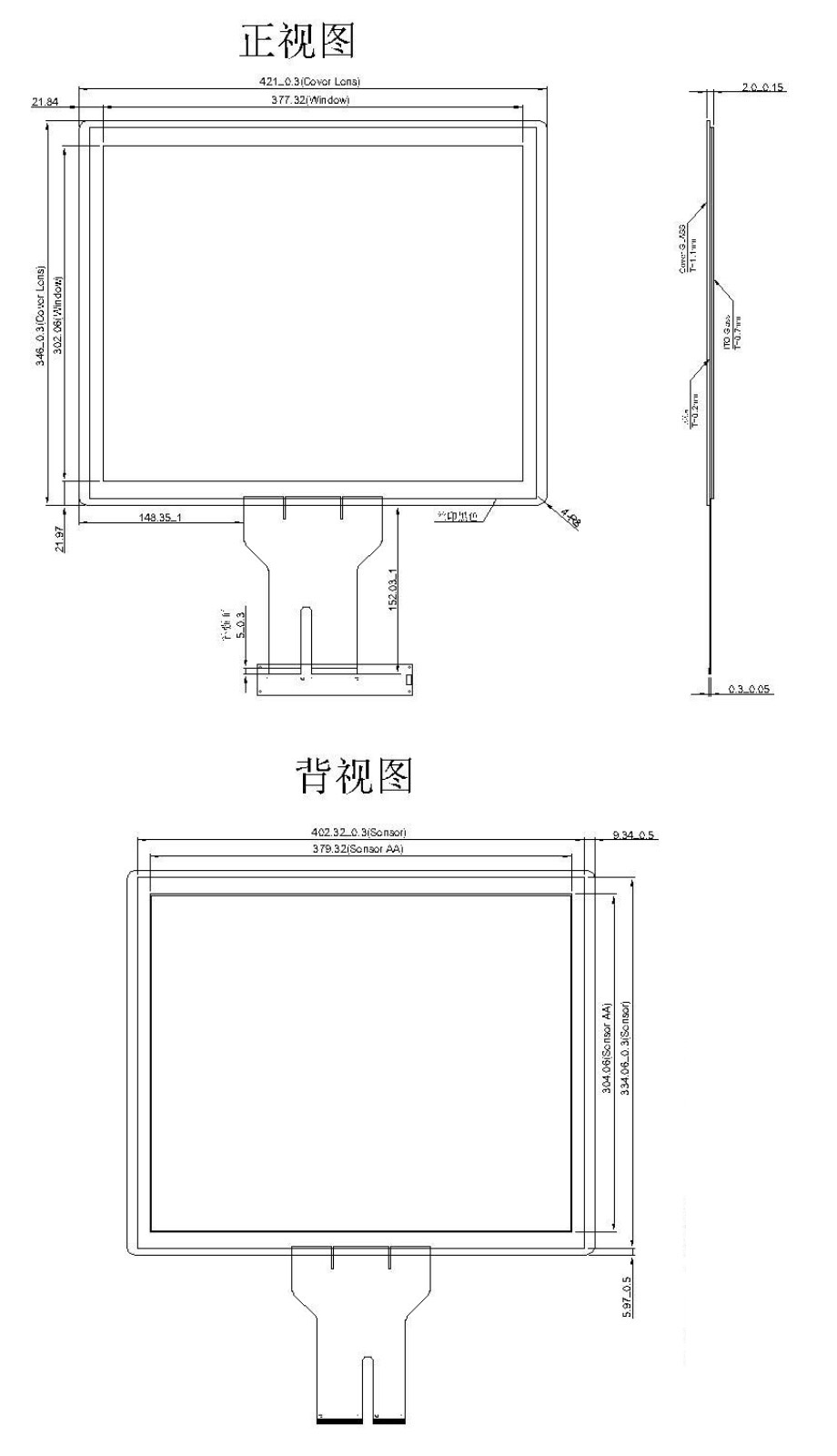 19寸投射式电容屏, 10点触摸, G+G工控、军工, 医疗电容屏, POS机、自助设备电容屏