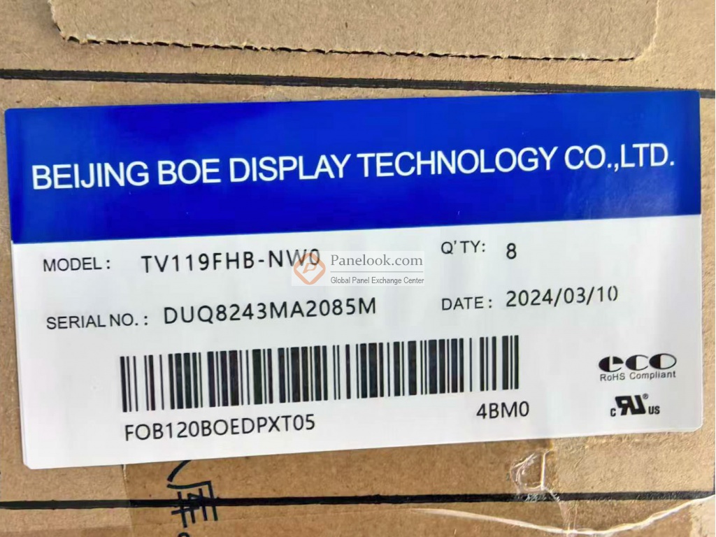 TV119FHB-NW0是京东方 (BOE)推出的一款11.9吋a-Si TFT-LCD液晶玻璃产品,它无背光,无触摸。此产品工作温度为 -20 ~ 60°C,存储温度为 -30 ~ 70°C。它的典型特征屏库总结为: 广色域,DCI-P3,sRGB,表面镜面。基于它的特征屏库推荐此型号应用于平板电脑等产品。本产品推荐使用ILI6147*4驱动IC。根据屏库掌握的情报此产品于2021年Q1量产,当前生产状态为已停产。目前此型号在屏库上有0条现货信息、3家供应商信息,交易氛围清淡。屏库于2021年08月16日对此型号首次建立参数,并于2026年02月06日对参数进行了最后更新。根据京东方 (BOE)于2019年10月19日发布的版本号为DBA0_Ver1.0的产品规格书,TV119FHB-NW0显示分辨率为1920(RGB)×1080 (FHD),宽高比为16:9 (宽:高),像素采用RGB垂直条状排列。它的显示区域尺寸为263.232(宽)×148.068(高) mm,外观尺寸为267.832(宽)×155.768(高)×0.9(厚) mm,表面处理为镜面 (Haze 0%),采用了0.40+0.50 mm的玻璃基板。本产品无背光。TV119FHB-NW0采用了eDP (2 Lanes)信号接口,总共30 pins,采用端子连接。它的典型垂直刷新率Fv为60Hz。屏库上标注的生产状态仅供参考,不应作为用户的决策依据。屏库®上所显示的面板参数均由屏库电子工程师依据规格书录入,已尽力减少错误,但不能保证参数的完全正确。请以规格书为准!如果开发新产品想采用此液晶玻璃,关于TV119FHB-NW0的最新的生产状态信息和技术信息,屏库®建议您咨询京东方 (BOE)。