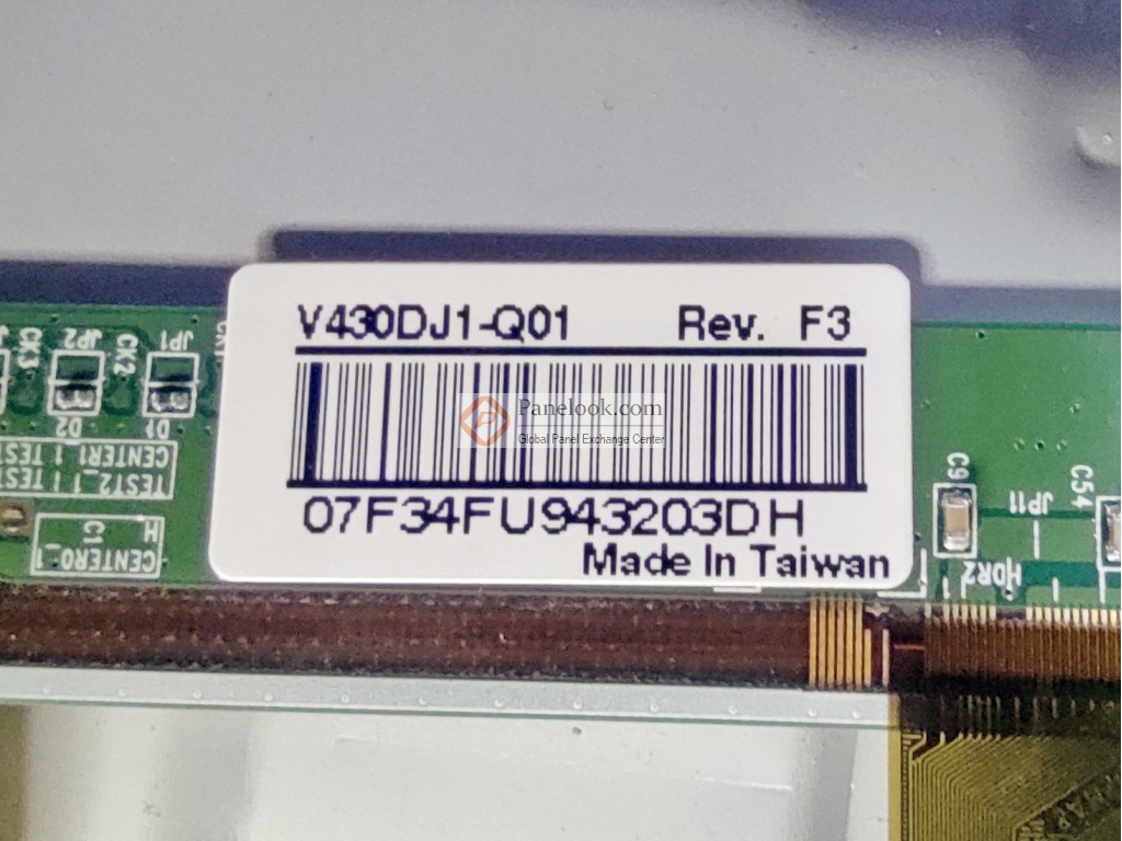 43英寸液晶玻璃产品,它无背光,无触摸,已邦定12 source chips驱动IC。根据群创 (Innolux)于2017年9月13日发布的版本号为Ver2.0的产品规格书,V430DJ1-Q01 Rev.F3显示分辨率为