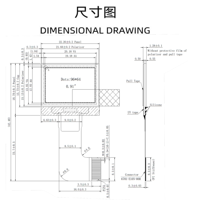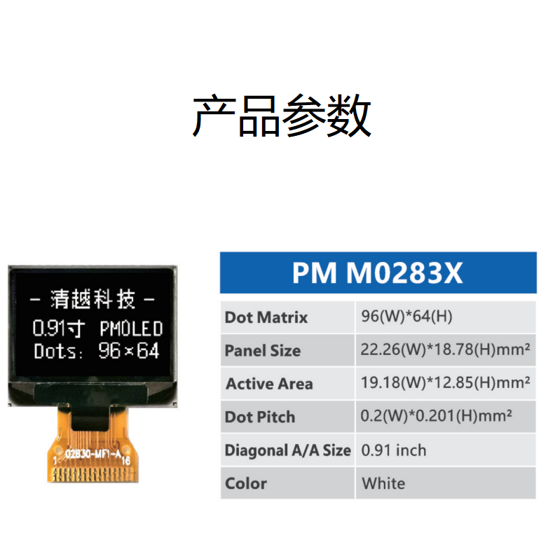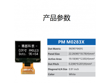 | 关键描述: | 0.91寸PMOLED显示屏0.91寸oled单色单白96X64显示模组 |