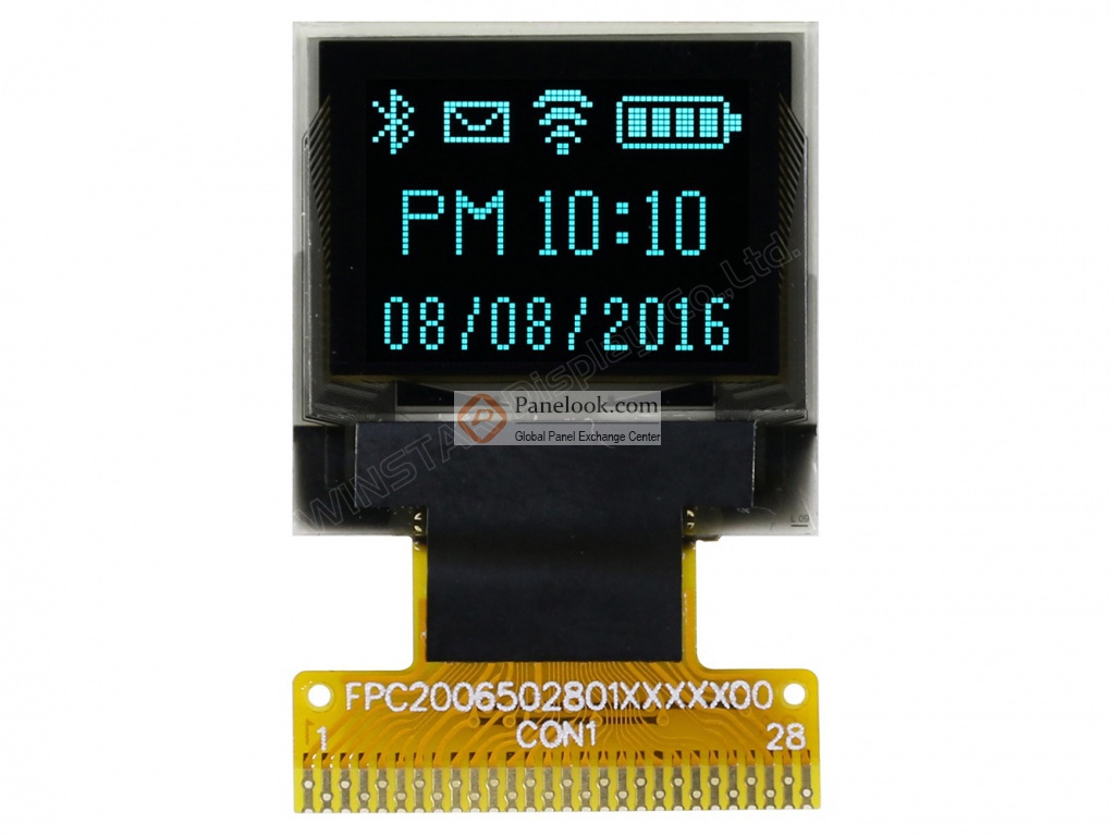 华凌 (Winstar) 推出的WEO006448ASPP3N00000是一款采用PM-OLED技术的0.66英寸显示屏,它自发光,无触摸。屏库总结它的典型特征为: 宽温。它的工作温度为 -40 ~ 80°C,存储温度为 -40 ~ 80°C。此型号适合应用于穿戴装置,医疗保健。本产品已邦定SSD1306BZ驱动IC。根据屏库掌握的情报此产品于2019年Q3量产,当前生产状态为量产中。目前WEO006448ASPP3N00000在屏库上有0条现货信息、0家供应商信息,交易氛围清淡。屏库于2018年05月30日对此型号首次建立参数,并于2023年12月08日对参数进行了最后更新。根据华凌 (Winstar)于2022年10月20日发布的版本号为Ver.G的产品规格书,WEO006448ASPP3N00000显示分辨率为64×48,宽高比为4:3 (宽:高),像素采用矩形排列。它的显示区域尺寸为13.42×10.06 (宽×高) mm,可视尺寸为15.42×12.06 (宽×高) mm,外观尺寸为18.46(宽)×18.1(高)×1.6(厚) mm,表面处理为含偏光片。本产品自发光,光源的使用寿命为20K小时。WEO006448ASPP3N00000采用了8-bit 6800/8080 并口, 4-wire SPI, I²C信号接口,总共28 pins,采用FPC连接,驱屏电压为3.3/7.5V (Typ.)(VDD/VCC)。如果开发新产品想采用WEO006448ASPP3N00000OLED屏,屏库®建议您向华凌 (Winstar)或其代理商了解关于WEO006448ASPP3N00000的最新的生产状态信息和技术信息。屏库®上所显示的面板参数均由屏库电子工程师依据规格书录入,已尽力减少错误,但不能保证参数的完全正确。请以规格书为准!