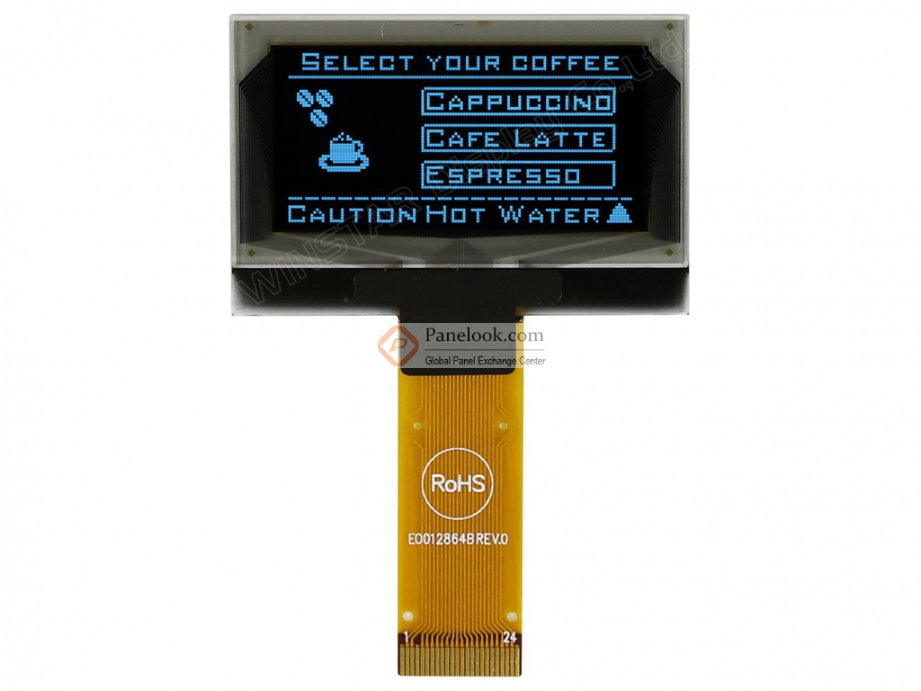 WEO012864BBPP3N00000是华凌 (Winstar)推出的一款1.54吋PM-OLED显示屏,它自发光,无触摸。此产品工作温度为 -40 ~ 80°C,存储温度为 -40 ~ 85°C。它的典型特征屏库总结为: 宽温。基于它的特征屏库推荐此型号应用于手持终端,仪器仪表,通讯设备,家用电器,医疗保健等产品。本产品已邦定SSD1305Z驱动IC。根据屏库掌握的情报此产品于2016年Q3量产,当前生产状态为量产中。目前此型号在屏库上有0条现货信息、1家供应商信息,交易氛围清淡。屏库于2018年05月31日对此型号首次建立参数,并于2024年05月07日对参数进行了最后更新。WEO012864BBPP3N00000显示分辨率为128×64,宽高比为2:1 (宽:高),像素采用矩形排列。它的显示区域尺寸为35.056(宽)×17.52(高) mm,外观尺寸为42.24(宽)×29.14(高) mm,可视尺寸为37.056(宽)×19.52(高) mm。本产品自发光。WEO012864BBPP3N00000采用了8-bit 6800/8080 并口, 4-wire SPI, I²C信号接口,总共24 pins,采用FPC连接,驱屏电压为3.0V (Typ.)。屏库上标注的生产状态仅供参考,不应作为用户的决策依据。此型号的参数并非摘录自规格书,仅做参考,请慎重使用!如果开发新产品想采用此OLED屏,关于WEO012864BBPP3N00000的最新的生产状态信息和技术信息,屏库®建议您咨询华凌 (Winstar)。