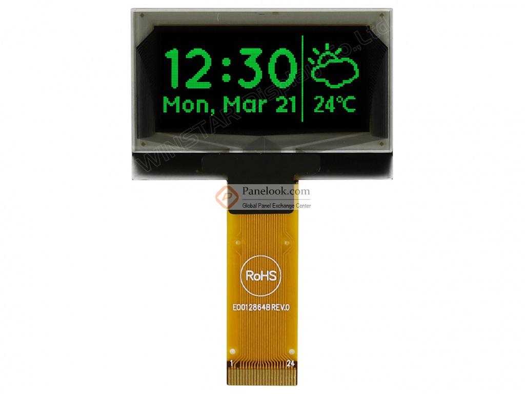华凌 (Winstar) 推出的WEO012864BGPP3N00000是一款采用PM-OLED技术的1.54英寸显示屏,它自发光,无触摸。屏库总结它的典型特征为: 宽温。它的工作温度为 -40 ~ 80°C,存储温度为 -40 ~ 85°C。此型号适合应用于手持终端,仪器仪表,通讯设备,家用电器,医疗保健。本产品已邦定SSD1305Z驱动IC。根据屏库掌握的情报此产品于2016年Q3量产,当前生产状态为量产中。目前WEO012864BGPP3N00000在屏库上有0条现货信息、1家供应商信息,交易氛围清淡。屏库于2018年05月31日对此型号首次建立参数,并于2024年05月07日对参数进行了最后更新。根据华凌 (Winstar)于发布的版本号为NA的产品规格书,WEO012864BGPP3N00000显示分辨率为128×64,宽高比为2:1 (宽:高),像素采用矩形排列。它的显示区域尺寸为35.056×17.52 (宽×高) mm,可视尺寸为37.056×19.52 (宽×高) mm,外观尺寸为42.24(宽)×29.14(高) mm。本产品自发光。WEO012864BGPP3N00000采用了8-bit 6800/8080 并口, 4-wire SPI, I²C信号接口,总共24 pins,采用FPC连接,驱屏电压为3.0V (Typ.)。如果开发新产品想采用WEO012864BGPP3N00000OLED屏,屏库®建议您向华凌 (Winstar)或其代理商了解关于WEO012864BGPP3N00000的最新的生产状态信息和技术信息。屏库®上所显示的面板参数均由屏库电子工程师依据规格书录入,已尽力减少错误,但不能保证参数的完全正确。请以规格书为准!