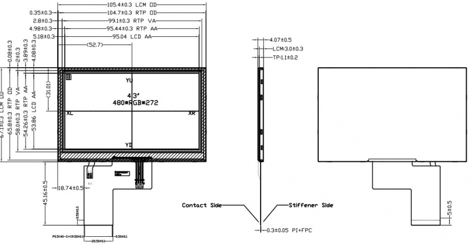 4.3"TFT with Resistive Touch