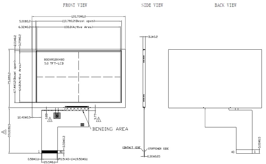Active Area :108.0mm(W)*64.8mm(H)