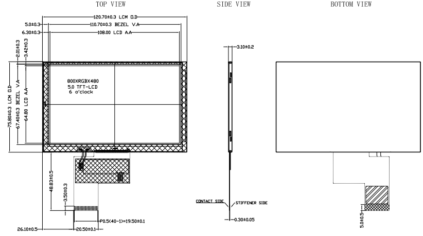 Active Area :108.0mm(W)*64.8mm(H)