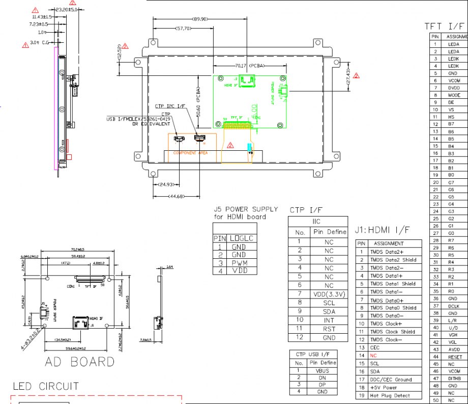 Active Area :154.08 (W) × 85.92 (H) mm (A.A)