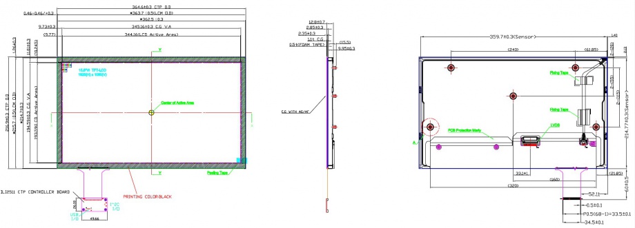 Active Area :344.16 (W) × 193.59 (H) mm (A.A)
