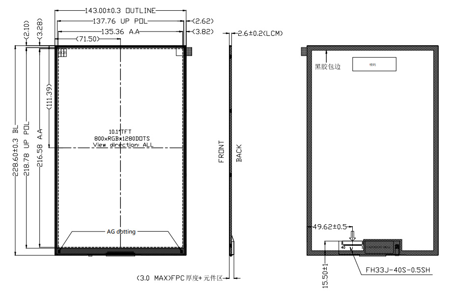 | 关键描述: | 10.1寸800*1280 TFT液晶模组带电阻触摸屏, 600nits ILI9881C-04T00GA , 40pins MIPI |