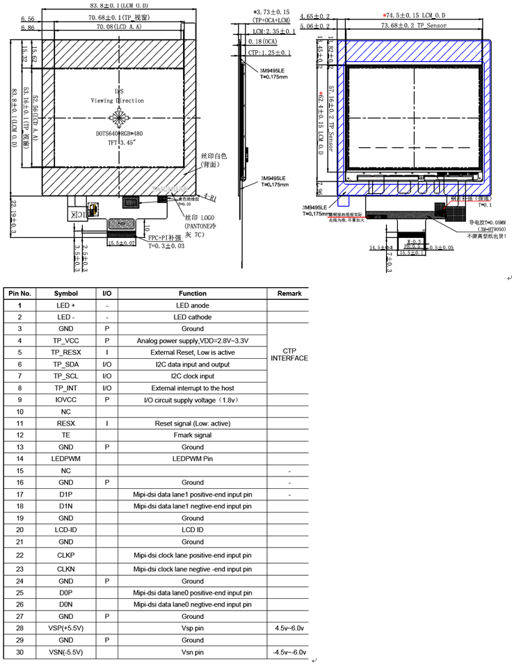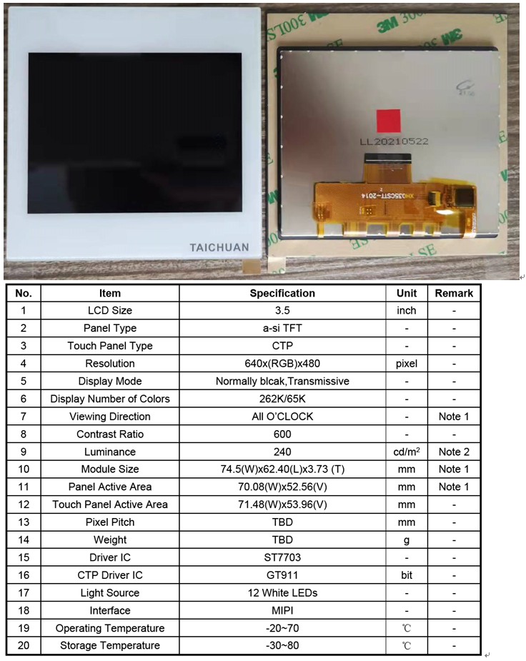| 关键描述: | 3.5寸TFT液晶显示屏 640*480 MIPI 30PIN IPS液晶屏 智能家居/可视门铃/工控屏 |