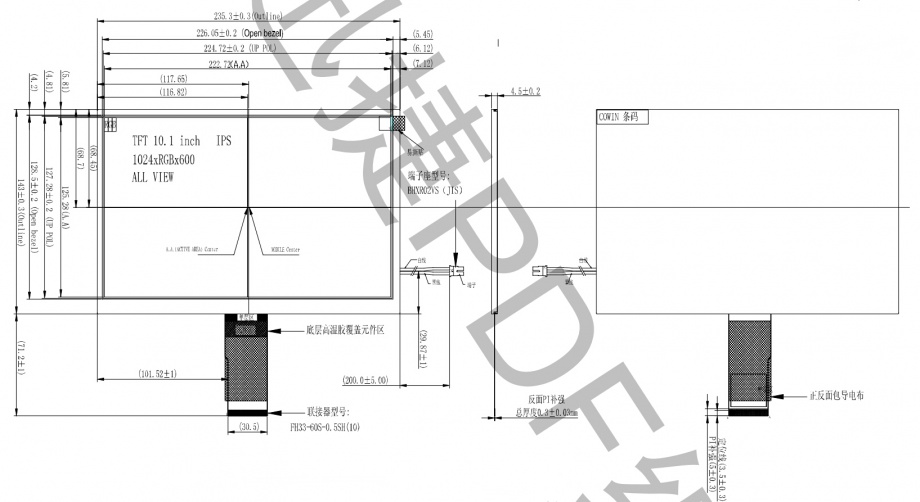 10.1寸1024*600 IPS TFT稳定量产,欢迎订购