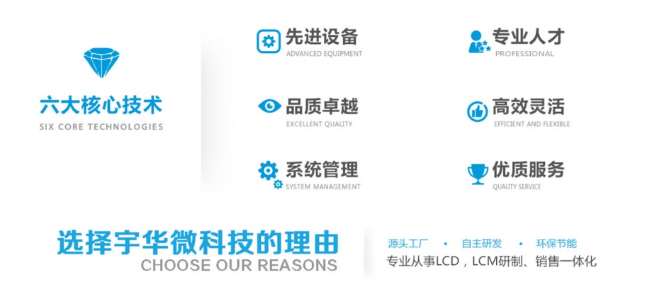 深圳市宇华微科技有限公司是宇华国际(香港)投资的一家专业从事液晶显示的高科技公司, 公司位于深圳市龙华新区。地理位置优越,环境良好,从成立以来, 公司本着以品质为根本,以服务客户为宗旨,以合作,关怀为公司文化,迎得了客户和员工的信任,目前发展迅速,正向更加美好的未来前进。公司目前的主要产品有群创体系的全部原装模组,包括,消费类电子,工控产品,笔记本产品, 商业显示产品。尺寸从3.5-28寸。 有自有品牌宇华组装产品,尺寸从1.77-15.6寸, 另有专业特殊定制产品:5.8寸,8寸等特殊长条定制产品 。欢迎广大客户来电或者来我司考察, 另外我司专业为外贸朋友提供代工产品服务, 欢迎广大外贸朋友来司洽谈。