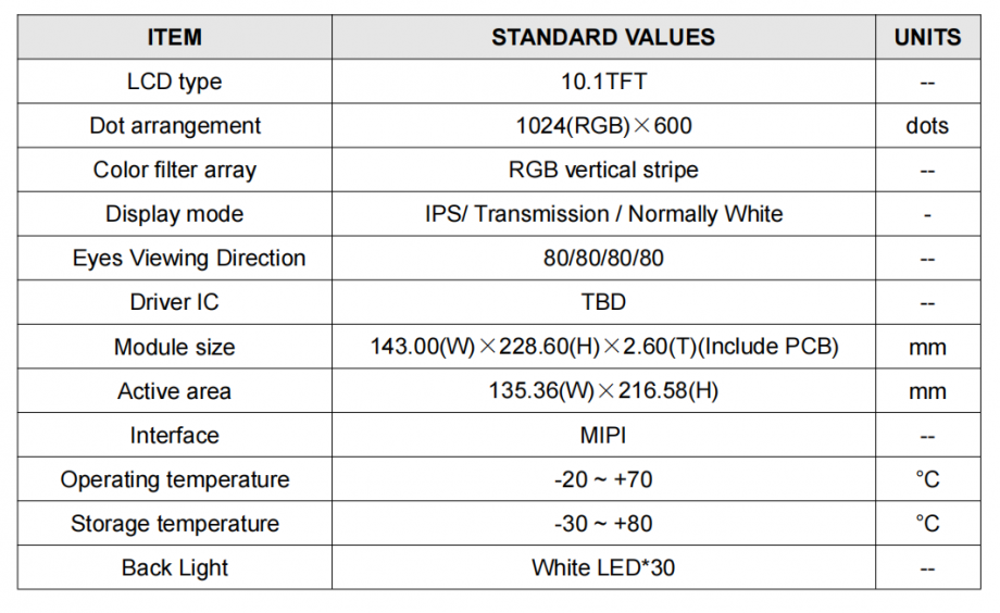 | 面板尺寸: | 10.1" |