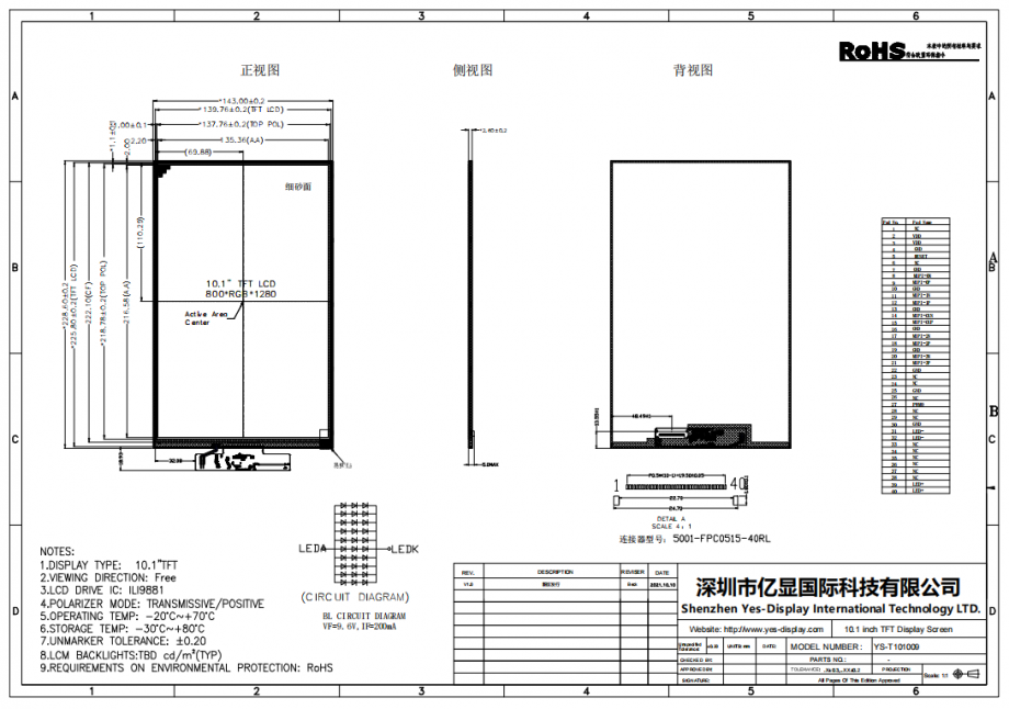 | 产品系列: | 10.1寸液晶显示屏,800*1280 |