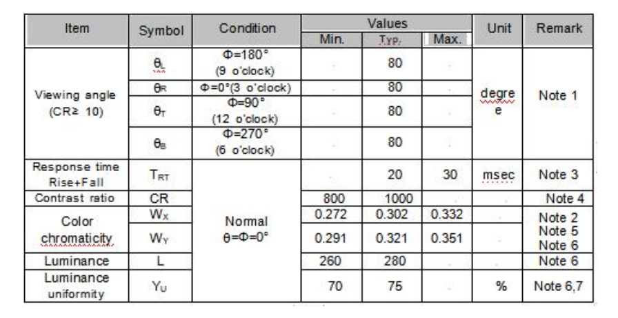 2. Optical Specifications