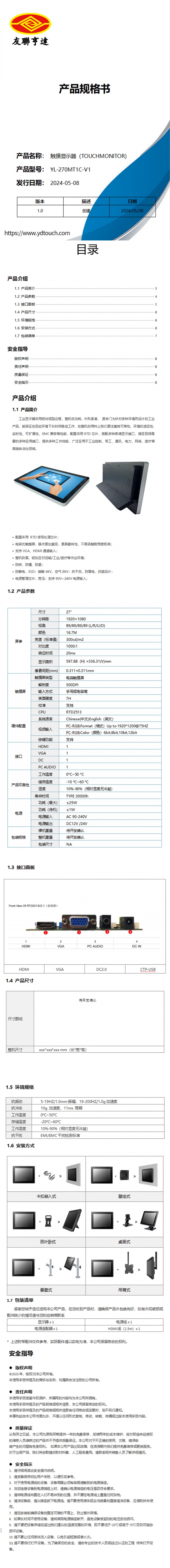 | 关键描述: | 27寸工控一体机触摸屏嵌入式触控显示器电容全封闭一体机工业显示器 1920*1080 300cd/m2 |