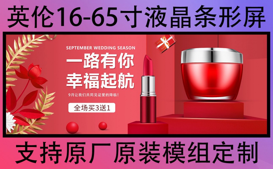 2、4K液晶商显条形显示屏,商超货架lcd非标条形屏,商显lcd条形广告机,银行医院排队叫号屏lcd条状形显示屏