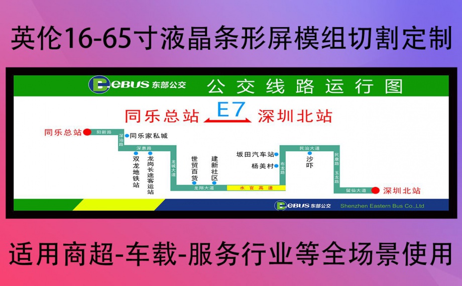 3、 公交轨道lcd导乘屏,公交lcd路牌屏,公交lcd车头牌屏,公交lcd车侧路牌屏,公交LCD导乘图,公交车尾屏,公交lcd高亮广告屏