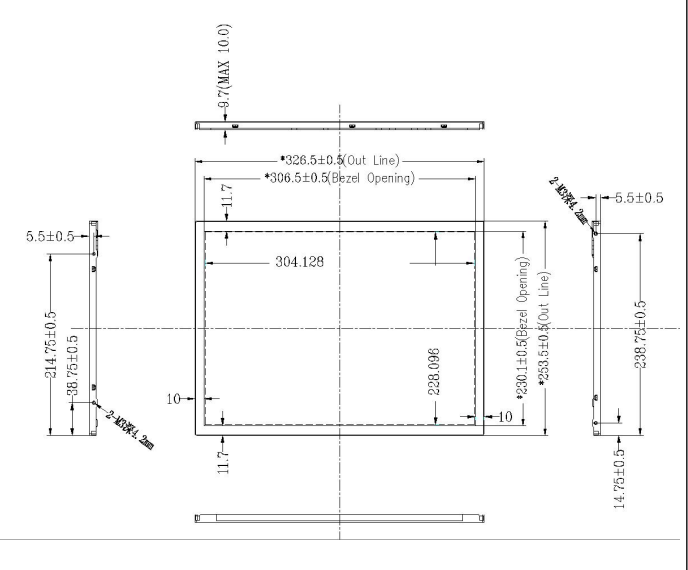 | Dimensional outline | 326.5(H) × 253.5(V) × 9.7(Total) | mm | Detail refer to drawing |