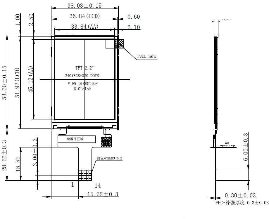 38.03(W)×53.60(H)×2.4(T)(Exclude FPC) |