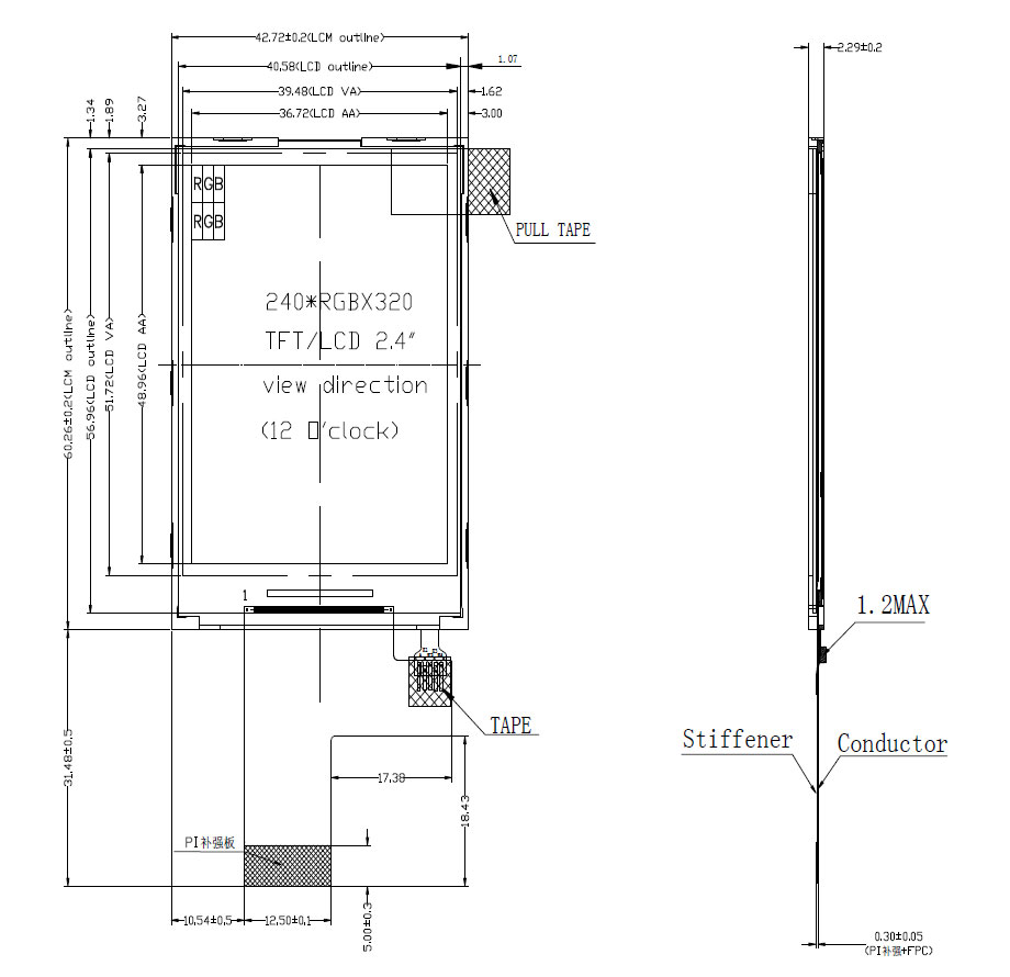 42.72(W)×60.26(H)×2.29(T)(Exclude FPC) |