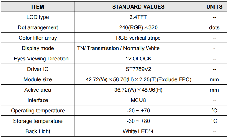 | 产品系列: | 2.4寸240*320 |