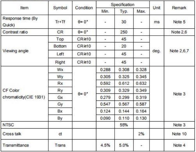 2.LCM Optical Characteristics