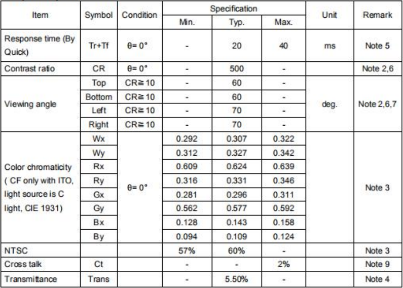 2. LCD Optical Characteristics