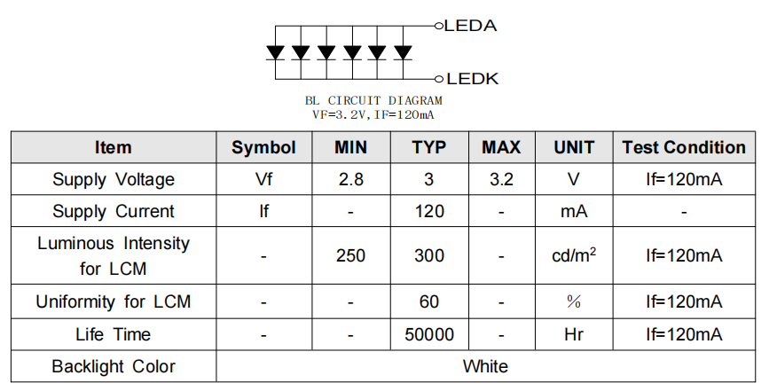 3. LED Backlight Characteristics