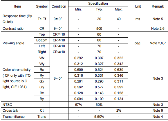 2.LCD Optical Characteristics