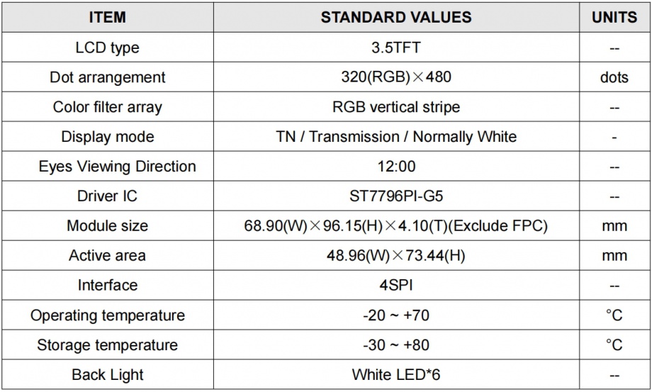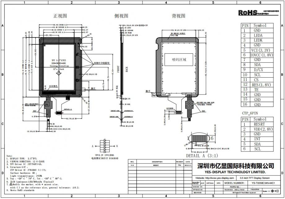 | 关键描述: | 亿显国际 3.5寸 320*480 300亮度 16PIN SPI-4 ST7796PI-G5 匹配CTP触摸, 智能穿戴、智能手表、工业、家电、玩具、医疗类用TFT液晶显示屏 |