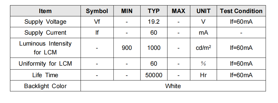 3.LED Backlight Characteristics