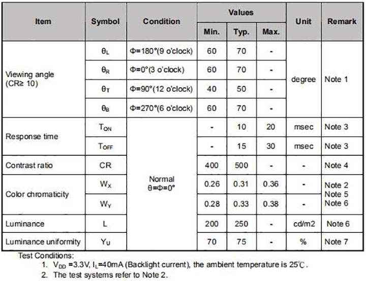 2.LCM Optical Characteristics