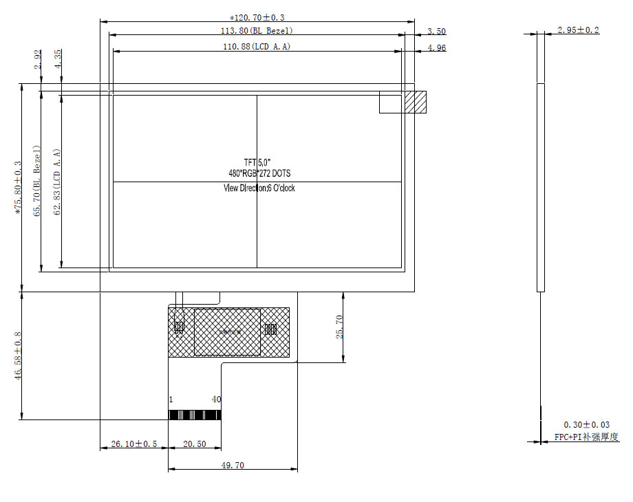 120.7(W)×75.8(H)×2.95(T)(Exclude FPC) |