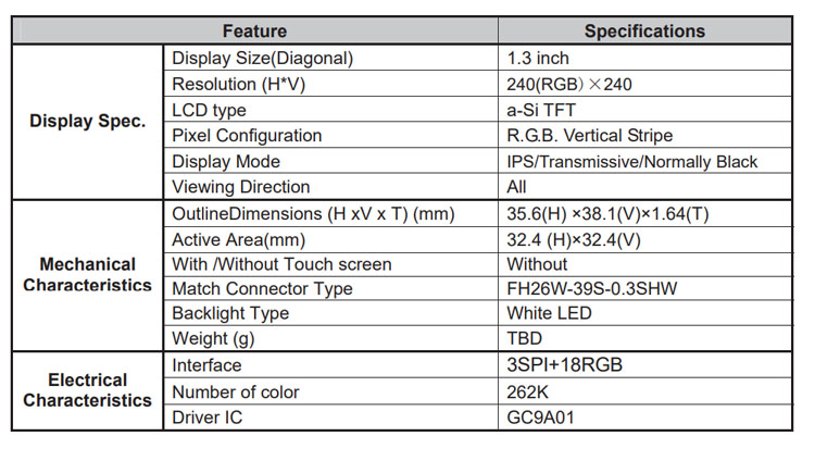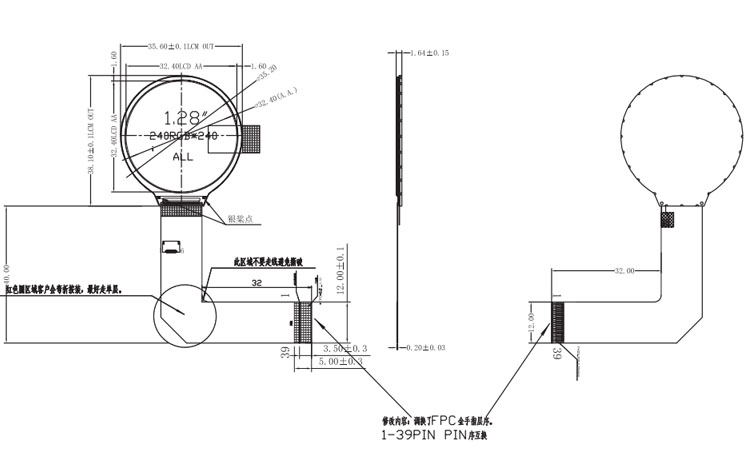 | 关键描述: | 宇锡1.3寸IPS圆形液晶模组240x240, 280亮度, 39pins 18bit RGB+SPI接口圆屏, GC9301, 全视角显示屏 智能手表屏 |