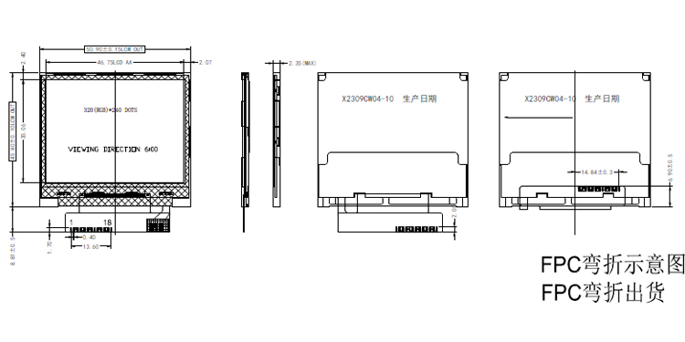 | 显示尺寸: | 46.75 (宽) × 35.06 (高) mm (A.A) |