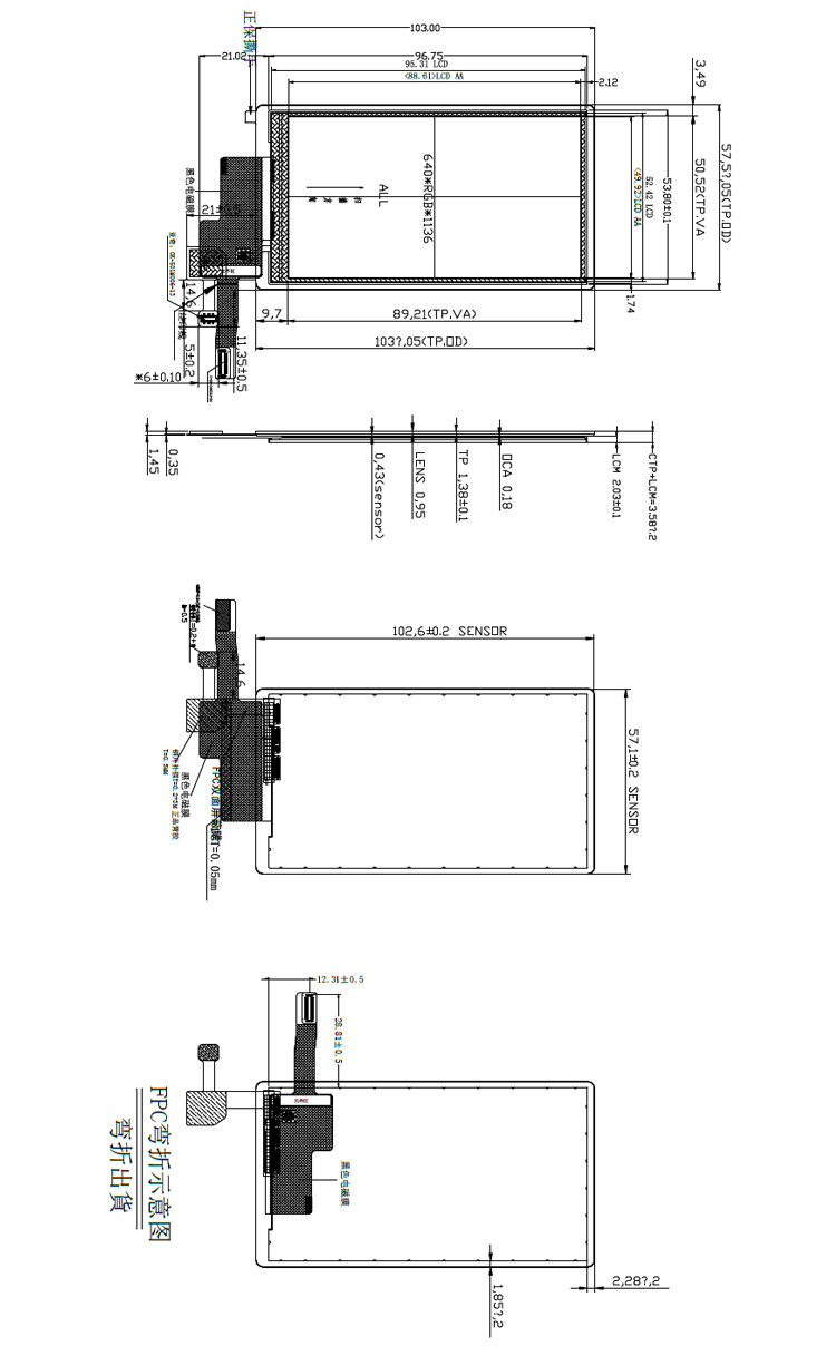 | 显示尺寸: | 49.92 (宽) × 88.61 (高) mm (A.A) |