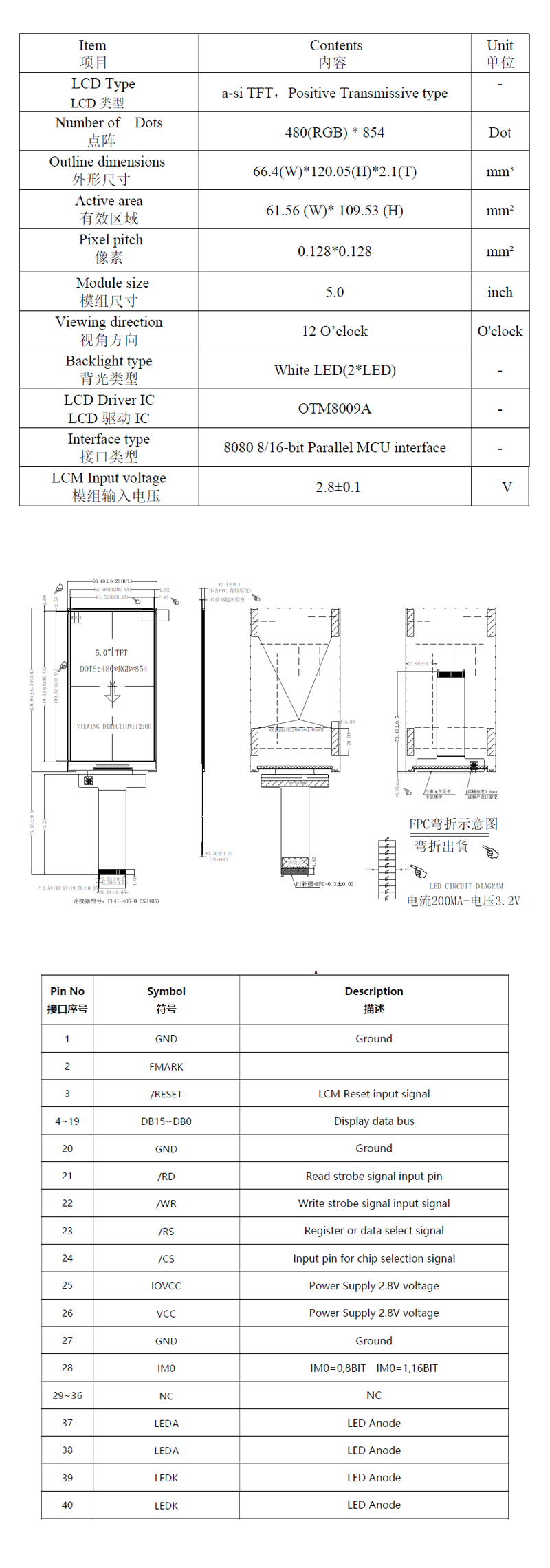 | 关键描述: | 宇锡5寸FWVGA480*854支持单片驱动MCU接口电容触摸屏芯片OTM8009A |