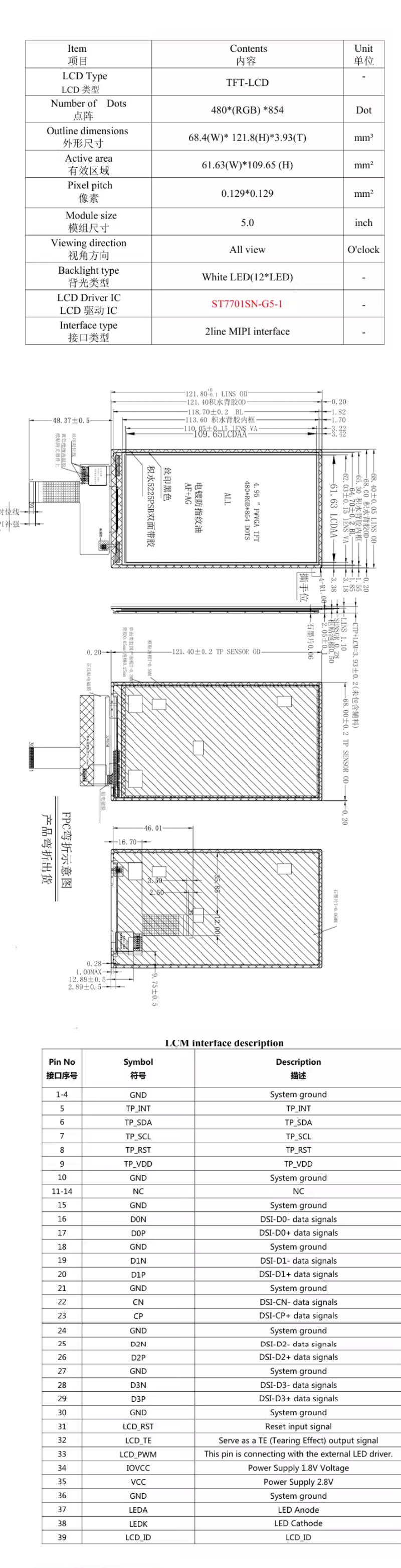| 关键描述: | 宇锡5寸480*854竖屏模组ST7701S 39pin插接窄边框昆仑通态组态屏 |