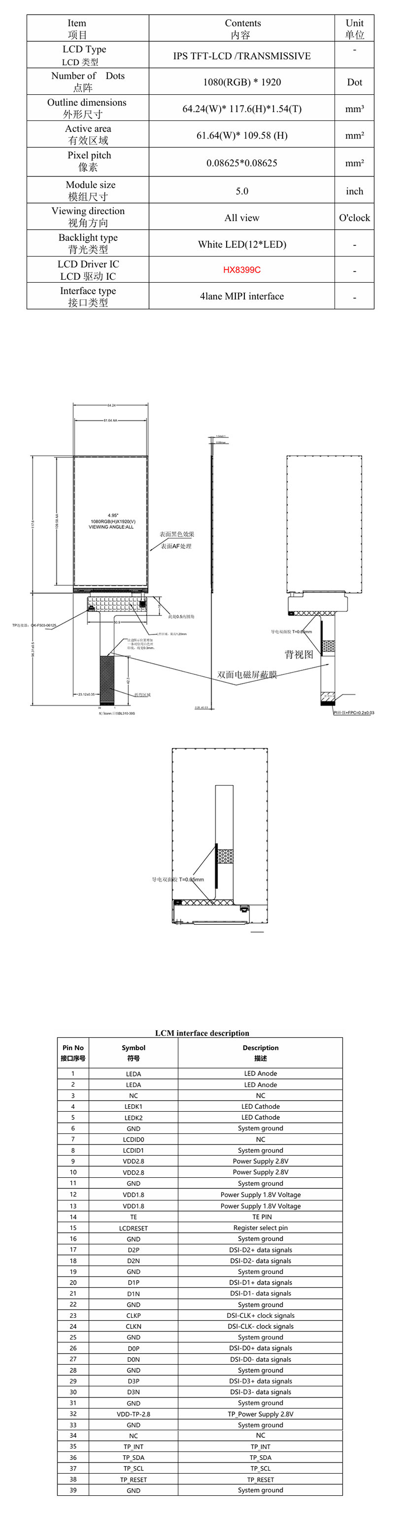 | 显示尺寸: | 61.64 (宽) × 109.58 (高) mm (A.A) |
