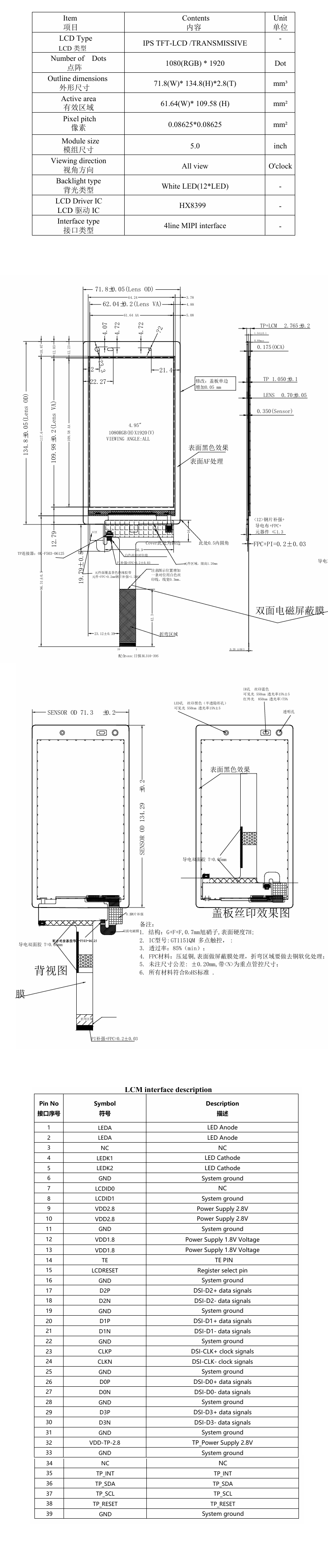 | 显示尺寸: | 61.64 (宽) × 109.58 (高) mm (A.A) |