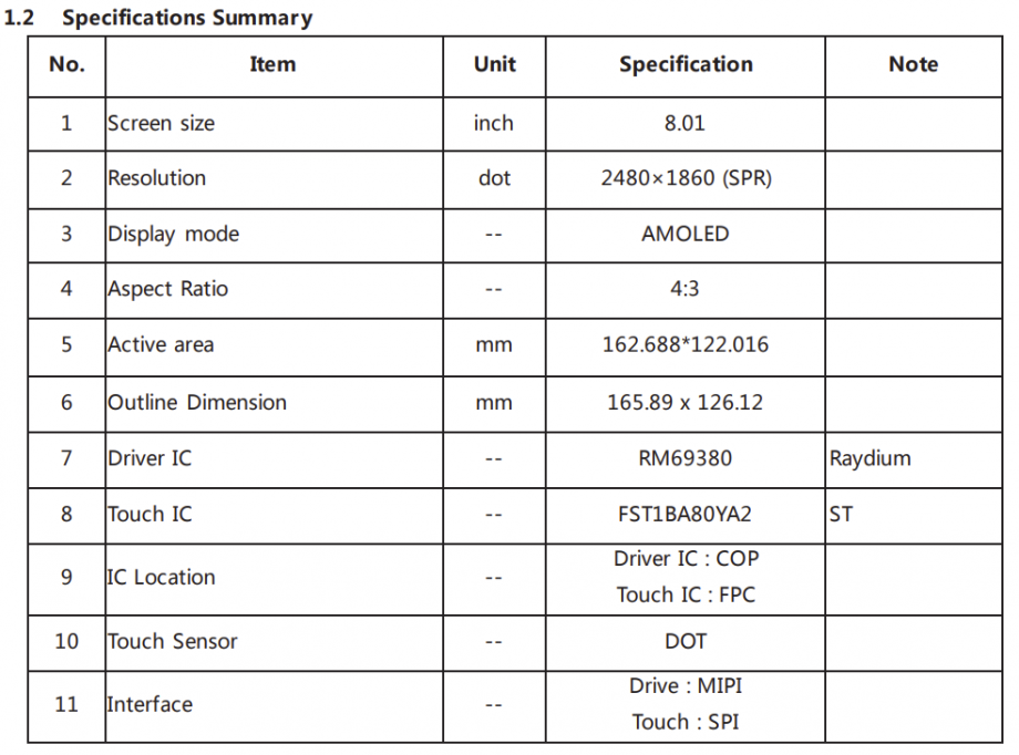 | 关键描述: | 宇锡8.01寸横屏AMOLED显示模组, 超高清 驱动IC RM69380 触摸IC FST1BA80YA2 2480x1860, 46pins, MIPI-SPI接口, IPS视角 折叠显示屏 |