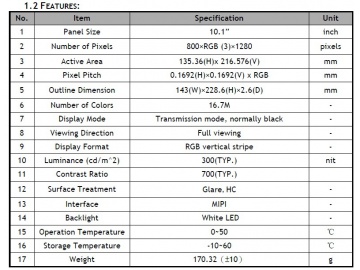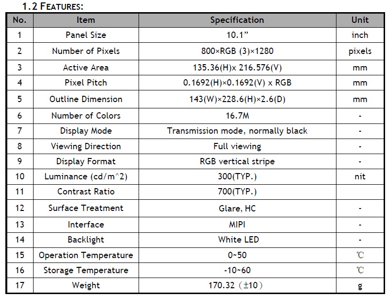 | 产品系列: | 10.1寸,800*1280 |